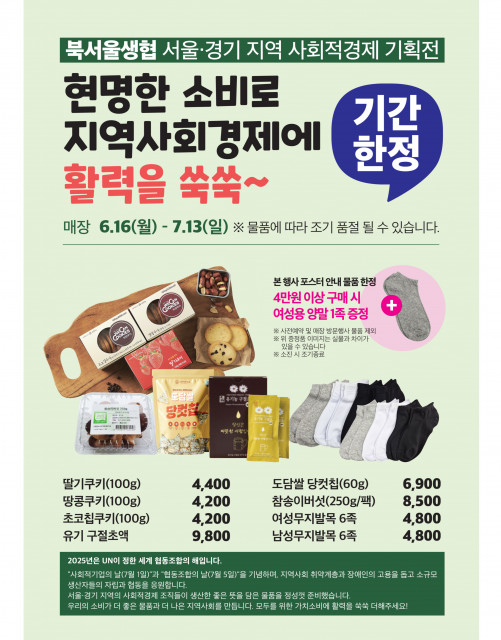 한살림은 6월 16일부터 7월 13일까지 ‘2025 사회적경제 기획전’을 개최한다. 한살림동서울생협, 한살림서서울생협, 한살림남서울생협, 한살림북서울생협, 한살림경인생협 등 서울과 경기 지역 5개 회원생협이 공동 주관해 사회적경제 조직의 판로 확대와 지속가능한 소비를 확산하는 취지로 진행한다. 특히 올해는 UN이 정한 두 번째 '협동조합의 해’로, 협동경제에 대한 관심을 일상 속 소비로 이어가자는 의미도 담고 있다.