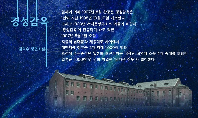 “경성감옥”이 완공되기 바로 직전인 1907년 8월 1일 오전, 지금의 남대문과 세종대로 사이에서 대한제국 정규군 2개 대대 1,000여 명과 조선에 주둔중인 일본의 조선주차군 13사단 51연대 소속 4개 중대 일본군 1,000여 명 간의 “남대문 전투”가 벌어졌다. 일본군의 압도적인 화력에 패하며 전투를 지휘했던 대한제국군 중대장이었던 김정협 정위(지금의 대위계급)는 부상을 입고 탈출하고, 나머지 500여명의 제국군은 일본군의 포로가 되어 완공직전의 경성감옥에 투옥된다.