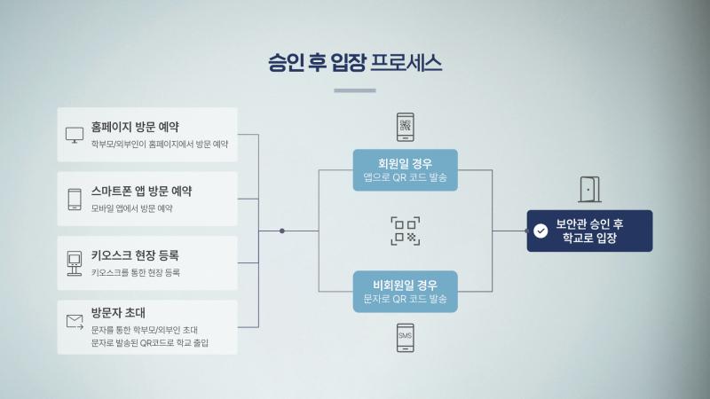 외부인의 방문을 차단하는 핵심 메커니즘은 '예약 시스템'이다. 학교를 방문해야 하는 정당한 목적을 가진 방문자에 한해, 사전에 방문 목적과 시간을 등록하고 승인받는 절차를 의무화한다. 이를 통해 불필요하거나 불순한 의도를 가진 외부인의 학교 시설 접근을 사전에 걸러낼 수 있다.