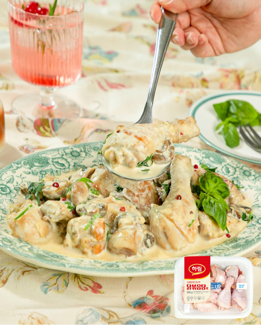 ‘치킨 크림 스튜’는 부드러운 닭고기에 크림소스의 풍미가 더해져 매력적인 프랑스 가정식 요리다. 하림의 ‘소금염지로 간이 쏙 닭볶음탕용’을 활용하면 속살까지 간이 배지 않을까 염려할 필요 없이 이국적인 치킨 요리를 맛있게 만들 수 있다. 파스타나 리조또로 변형하기도 어렵지 않다.