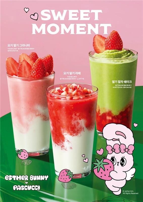 SPC그룹이 운영하는 이탈리아 정통 카페 브랜드 파스쿠찌가 '에스더버니'와 함께 딸기 음료 2종을 선보인다. 파스쿠찌는 '에스더버니와 함께하는 달콤한 순간(Sweet Moment with Esther Bunny)'을 주제로 딸기 시즌 캠페인을 진행한다.