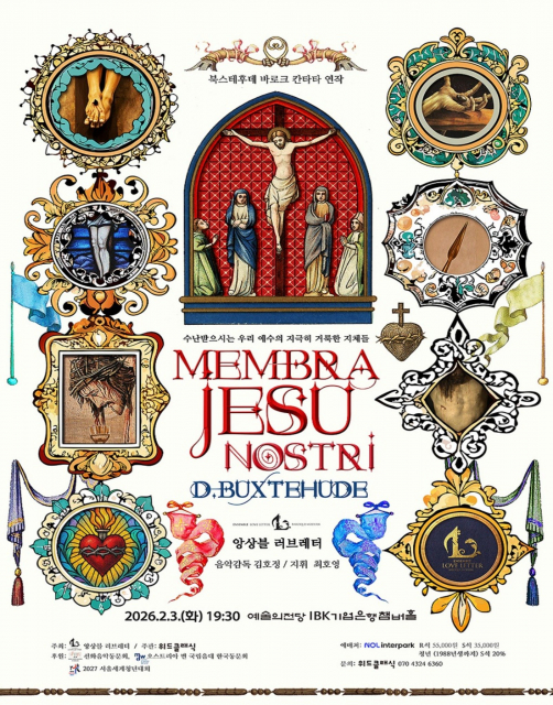 오는 2월 3일에 예정된 앙상블 러브레터의 ‘멤브라 예수 노스트리’는 5성부 성악(소프라노1, 소프라노2, 카운터테너, 테너, 베이스)과 두 대의 바로크 바이올린, 비올라 다 감바, 바로크 첼로, 테오르보, 오르간으로 편성돼 있다. 북스테후데의 의도에 충실하기 위해 바로크 시대의 조율과 음향, 연주법에 기반한 시대 악기로 전곡을 연주하며, 일본의 테오르보 연주자 코헤이 오타를 초청해 통주저음의 깊이를 더했다. 또한 고통과 위로의 대비를 섬세하게 드러내기 위해 빛 아티스트와 협업, 각 칸타타의 조성과 정서에 반응하는 빛을 연출했다.