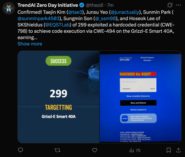 SK쉴더스·Petoworks, 대회 개막일 EV 충전기 취약점 시연 성공… 기술력 입증
