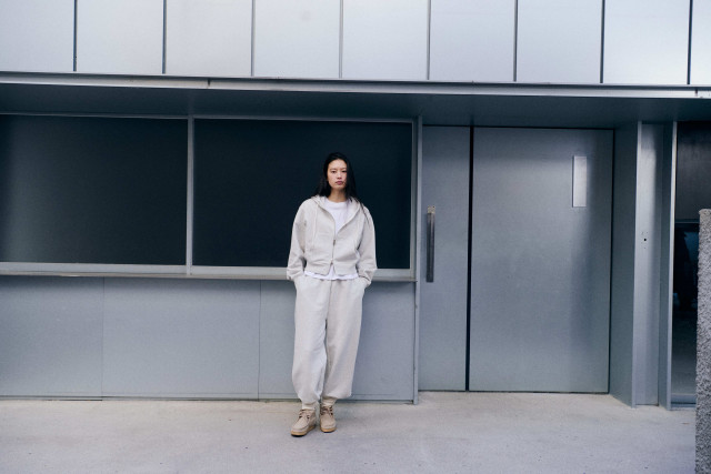 나우(nau) 에센셜 스웻 후드 집업 및 에센셜 스웻 팬츠 화보