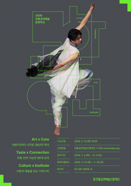 전통공연예술진흥재단(이사장 배영호)이 운영하는 ‘전통공연예술문화학교’(이하 문화학교)가 오는 2월 10일(화) 오전 10시부터 2026년도 신규 수강생을 모집한다.