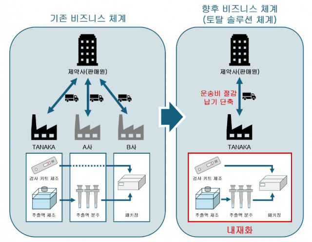 기존에는 검사 키트의 개발과 제조, 추출액 벌크 생산에 주력해 왔으나, 이번 설비 확충을 통해 최종 제품 패키징까지 사내에서 완결할 수 있게 됐다. 다나카 측은 이를 통해 고객사 요구에 맞춘 유연한 대응이 가능해졌으며, 특히 공정별 개별 수탁은 물론 양산까지 전 과정을 원스톱으로 지원할 수 있는 기반을 마련했다고 설명했다.