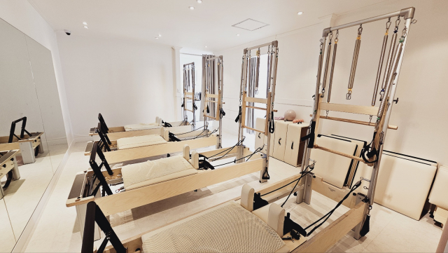 리포머, 체어, 바렐 등 전문 기구가 배치된 리히트필라테스 내부 전경