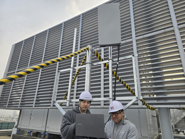 삼성전자 차세대통신연구센터와 KT 연구진이 서울 우면동 소재 삼성전자 서울R&D캠퍼스에서 초고집적 다중 안테나 기술을 검증하고 있다