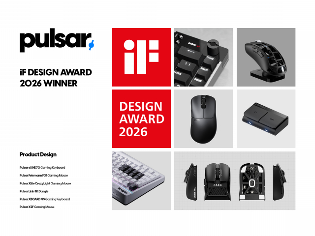 마우스 부문에서는 Pulsar Xlite Crazylight, Pulsar Feinmann F01, PulsarLab X2F가 본상을 수상했다. 펄사는 게이밍 마우스의 쉐입과 설계 완성도로 잘 알려진 브랜드로, 초경량 구조와 사용자 그립 중심 설계를 통해 차별화된 경쟁력을 구축해 왔다.