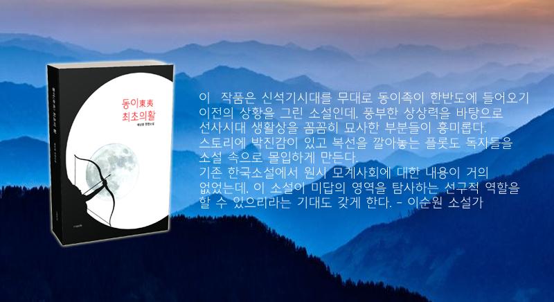 소설 《동이(東夷) 최초의 활》은 우리의 직접 조상인 동이족(東夷族)이 한반도에 들어오기까지의 여정을 담아낸 것이다. 작품에 등장하는 동이족의 무대는 신석기시대의 두만강 북쪽 만주 지역이다. 당시의 기후와 생활은 지금 우리가 추측하는 것과는 많이 달랐을 것이다. 온화한 기후에 살던 그때의 사람들은 영화에서 보는 것처럼 털가죽으로 몸을 감싸지도 않았고 의미를 알 수 없는 단음(短音)으로 의사를 소통하지도 않았다. 그때 이미 식물에서 뽑아낸 섬유를 정교하게 짜내 만든 옷을 입었으며 바구니를 비롯한 각종 생활 공예품을 만들어 사용했다.
