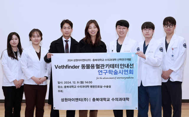 국내 의료기기 전문기업 성원아이엔티가 충북대학교 수의과대학과 산·학 연구개발의 일환으로 동물용 의료 가이드와이어 ‘Vethfinder’의 연구성과를 발표하며 지난 9일 충북대학교 수의과대학 연구실에서 학술시연회를 개최했다.