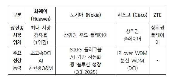 1. 광통신 장비 시장: '빅 3'와 추격자들의 경쟁