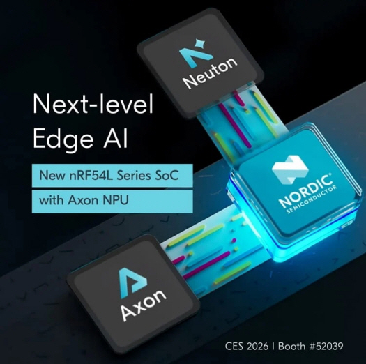 노르딕 세미컨덕터는 2023년 아틀라조(Atlazo)와 이 회사의 액손(Axon) 기술을 인수했다. 초고효율 AI 하드웨어 가속기인 액손 NPU(Neural Processing Unit, 신경망 처리장치)를 통합한 nRF54LM20B SoC는 nRF54L 시리즈 가운데 최초의 대용량 메모리 제품으로, 까다로운 엣지 AI 워크로드 처리 성능을 대폭 강화했다. 액손 NPU는 사운드 분류, 키워드 스폿팅(keyword spotting), 이미지 기반 감지 등과 같은 작업에서 경쟁 솔루션 대비 최대 7배 더 빠른 성능과 최대 8배 더 높은 에너지 효율성을 제공한다.