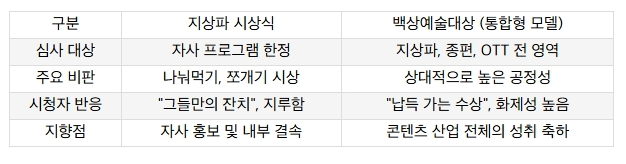 —지상파 통합 시상식 vs 백상예술대상 비교
