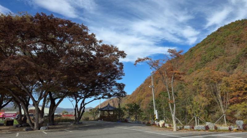 주왕산송어 식당 뒤 주차장과 200년 된 유네스코 보호수