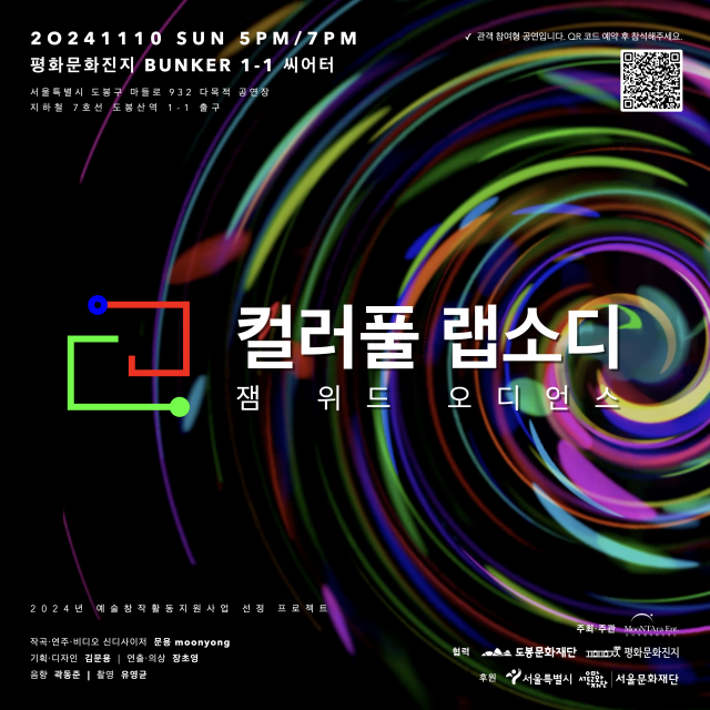 ‘컬러풀 랩소디: 잼 위드 오디언스’는 2024년 예술활동지원사업 선정 프로젝트로, 문타라엔터테인먼트(대표 김문용)가 주최·주관하고 서울특별시와 서울문화재단이 후원하며 도봉문화재단과 평화문화진지가 협력한다.