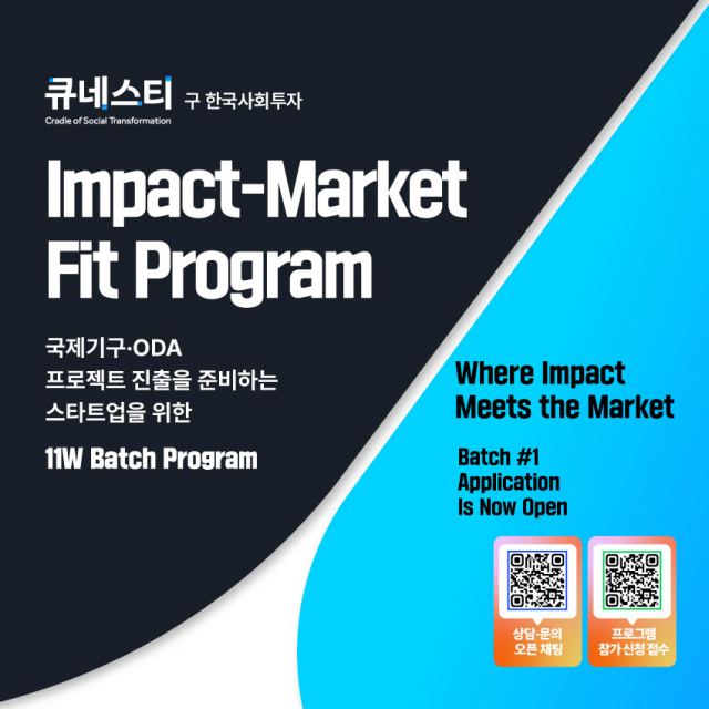 임팩트 투자·액셀러레이팅 기관 큐네스티(옛 한국사회투자)가 개발협력(ODA) 시장 및 국제기구 프로젝트 진출을 준비하는 스타트업을 위한 전문 프로그램 ‘Impact-Market Fit Program’을 새롭게 선보인다고 밝혔다.