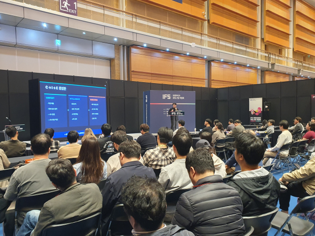 포스페이스랩 승영욱 대표가 ‘IFS 2026’에서 데이터 기반 프랜차이즈 운영 혁신 전략을 발표하고 있다