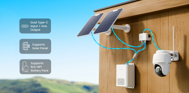 RLA-BP1은 전원 인입이 어려운 환경에서 다양한 전자기기에 안정적인 전력을 공급할 수 있도록 설계된 실외형 전원 솔루션이다. 특히 배터리 기반 보안 카메라의 사용 시간을 연장하고 유지 관리 부담을 줄일 수 있도록 개발된 것이 특징이다.